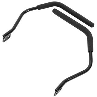 Hydraulically dampened twin levers adjustable both fore and aft. Also has 2-position height adjustment.