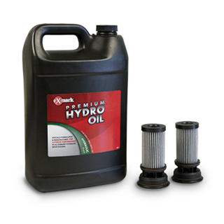 Two Exmark exclusive Parker unitized pump and wheel motor systems with no hoses, integrated cooling fans, shock valve, 1.7-quart integrated reservoir, spin-on filter and heavy-duty components. 16 cc pumps and 17.1 cubic inch motors.