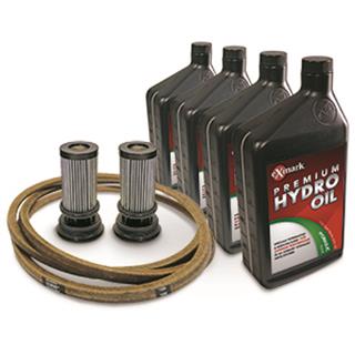 Two Exmark exclusive Parker unitized pump and wheel motor systems with no hoses, integrated cooling fans, shock valve, 1.7-quart integrated reservoir, spin-on filter and heavy-duty components. 16 cc pumps and 18 cubic inch motors.